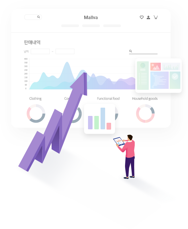쇼핑몰 개설과 운영에 힘들이지 마세요홍보에만 집중할 수 있도록 모든 서비스를 제공해드립니다
